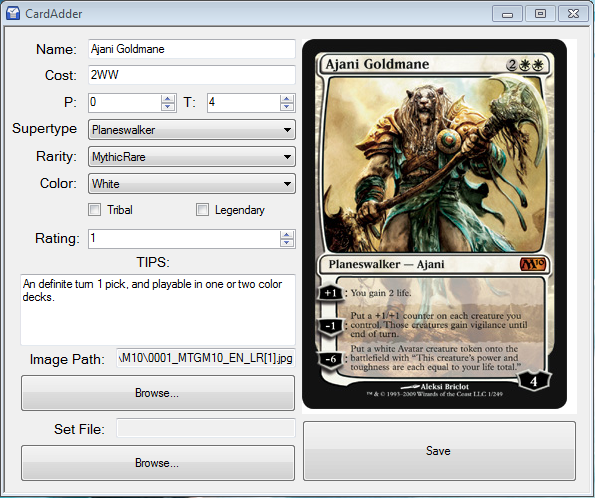 DraftMaster currently comes with about half of the M10 set - with around 10 commons. That's on my to-do list as well, but not as a programmer. Anyone can do that - just use CardAdder.exe (included with download) and add cards to the M10 set file. If anyone wants to and adds a significant amount of cards (at least 30), post here with an a zip file as an attachment and I'll add it to the release.