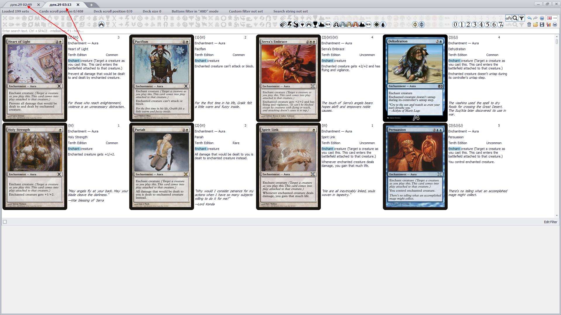One-click filter buttons to instantly filter cards by abilities like Flying or Haste, type, manacost and so on. details | ![]() |