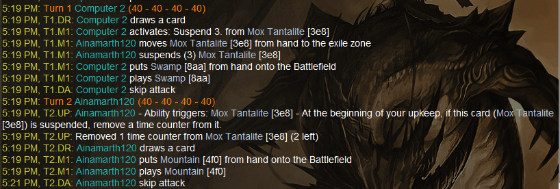Playing against an AI opponent, it looks like the opponent is suspending Mox Tantalite from my hand. This only seems to happen if Mox Tantalite is in my opening hand.
