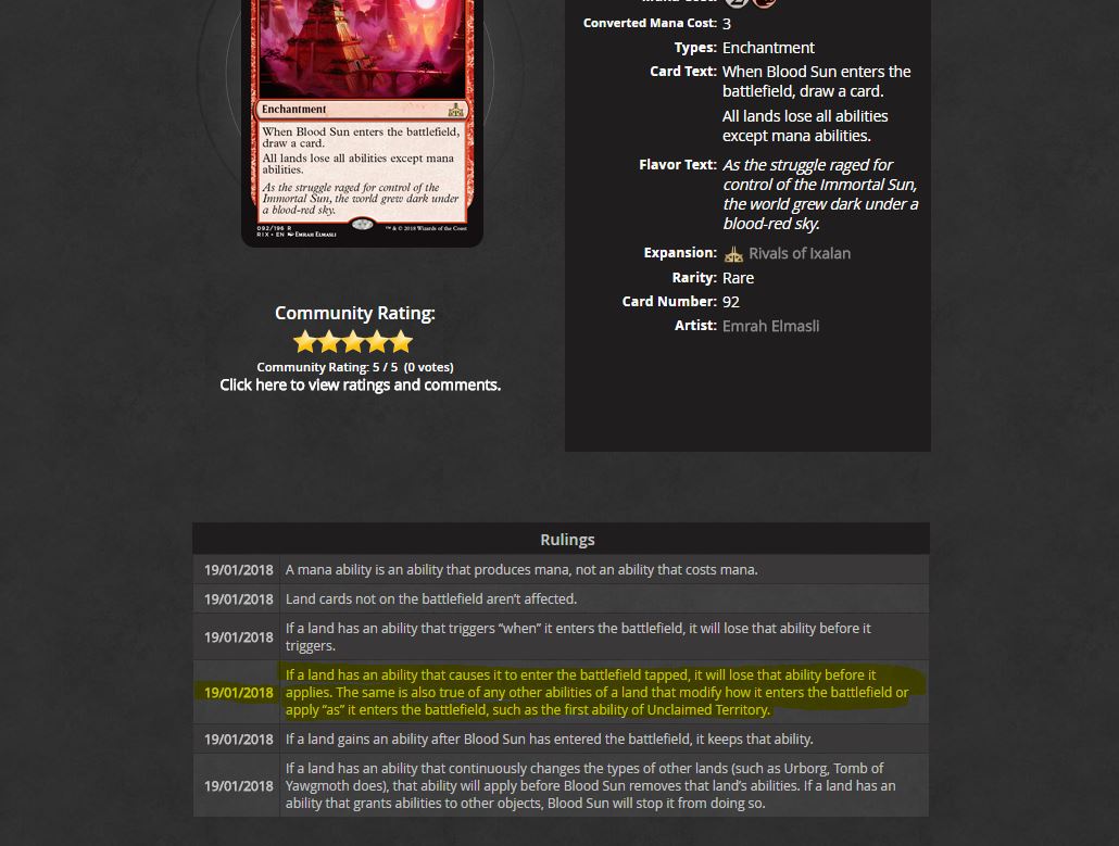 Lands with blood Sun enter in the battlefield Untapped.