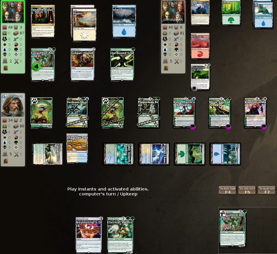 Playing a 3-player EDH game, 2 AI opponents (computer-mad)