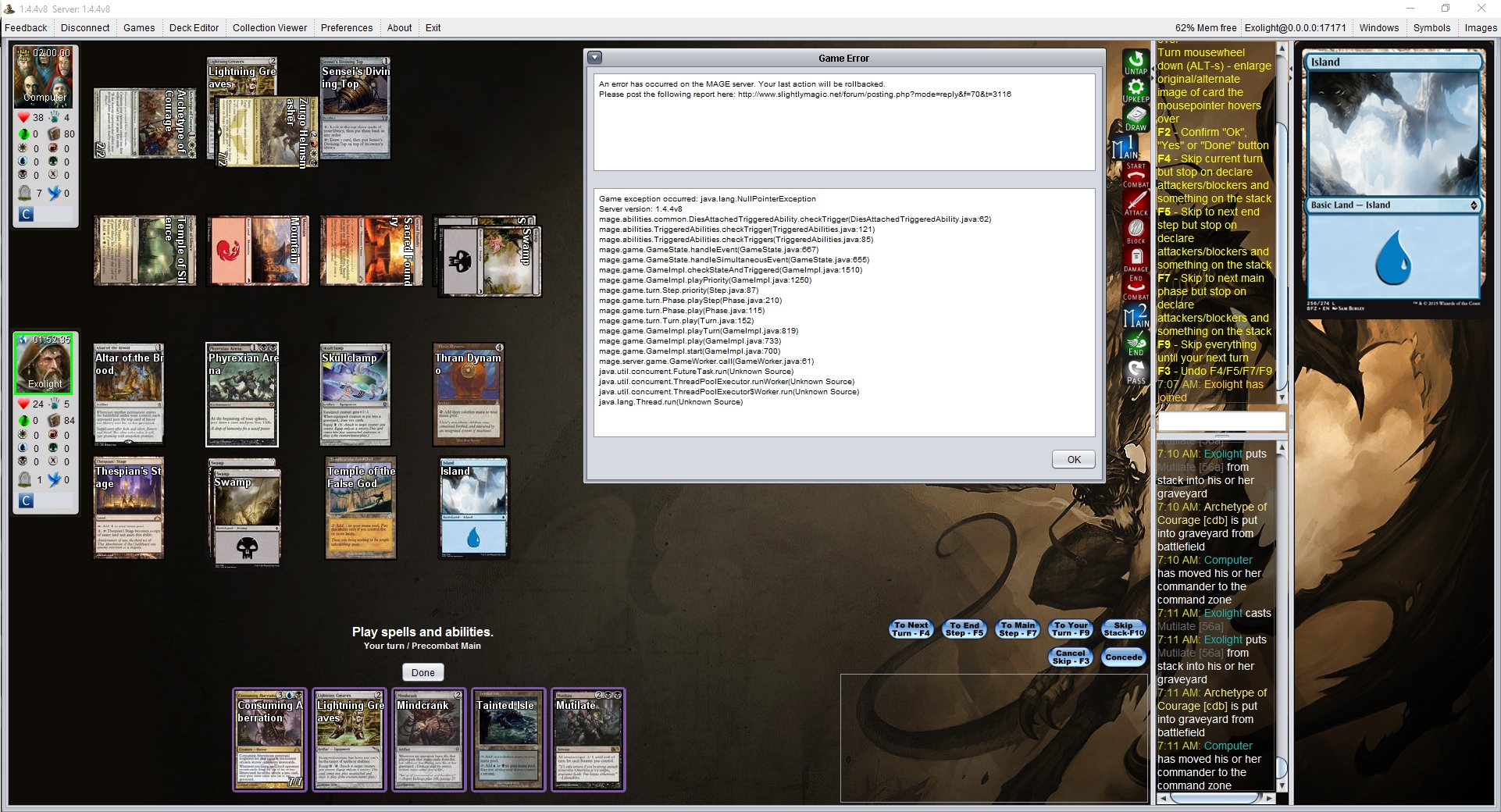 Casting Mortify on a Containment Priest resulted in an EDH game vs the AI resulted in the following error