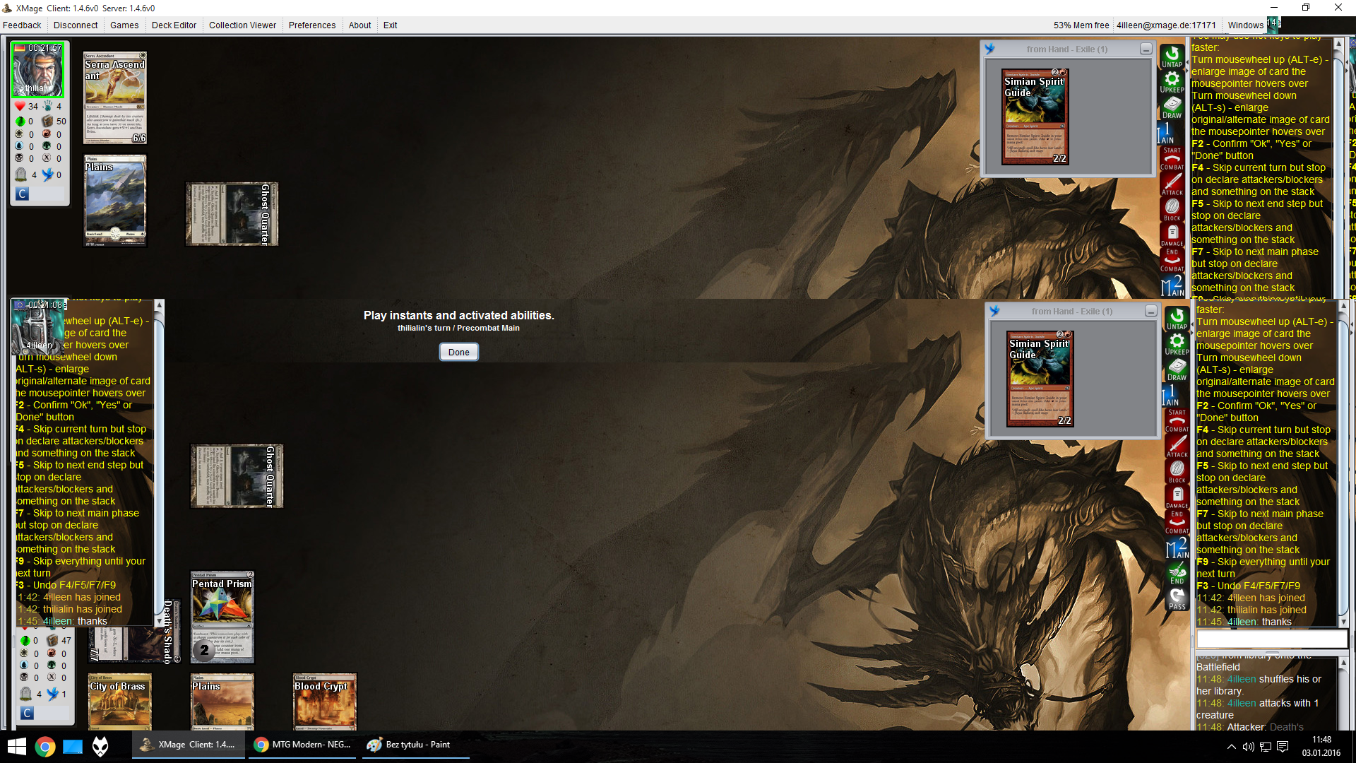From time to time my screen goes crazy and starts to 'replicate' itself in different places. Please see the attached screenshot as it's hard to explain. Once this starts happening (always during a match) it affects the whole application - sideboard screen, lobby, preferences window, etc. This replication/displacement effect changes as I move the mouse around the screen - everything blinks and appears in different places. It's possible to see the screen normally for a second or two but it's really unpleasant to play games like this.
