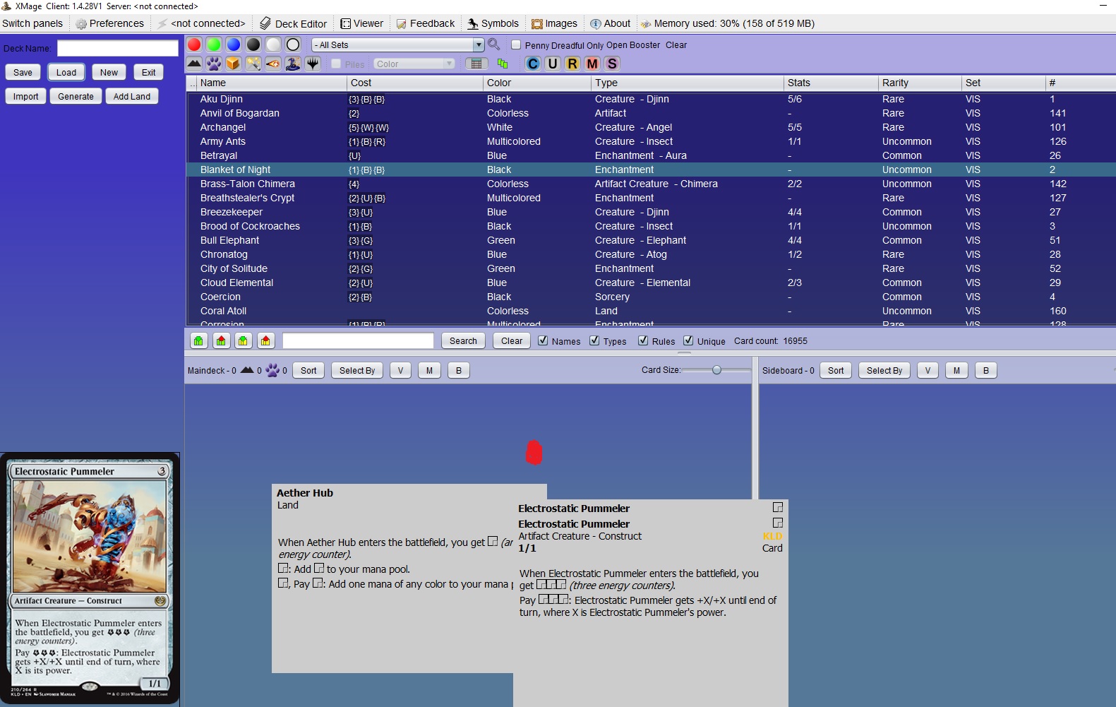 And second problem, which is probably related to first one, that after i start xmage and i go to some match or even deck editor, even when i have downloaded entire collection of cards, i dont see them in deck, i see pictures of them if i go with my mouse over them but not in deck or in deck editor (picture n2, and i even put there red dot when my mouse was when i took that screenshot). Ty for help