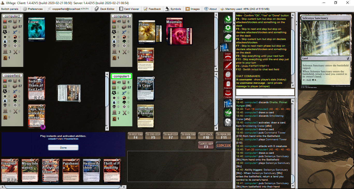 I got the same problem again, I forgot to take a capture this time, but the difference between the previous one and your sample, if I remember correctly, was that one of the AI player was defeated already, while in my most recent encounter with this problem AI player 1 didn't have creatures in play and once again only one of the creatures from the AI player 2 was destroy while none of my creatures were destroy.copperfield wrote:The AI playing Highcliff Felidar only destroy one of the 2 valid targets, leaving my angel alone