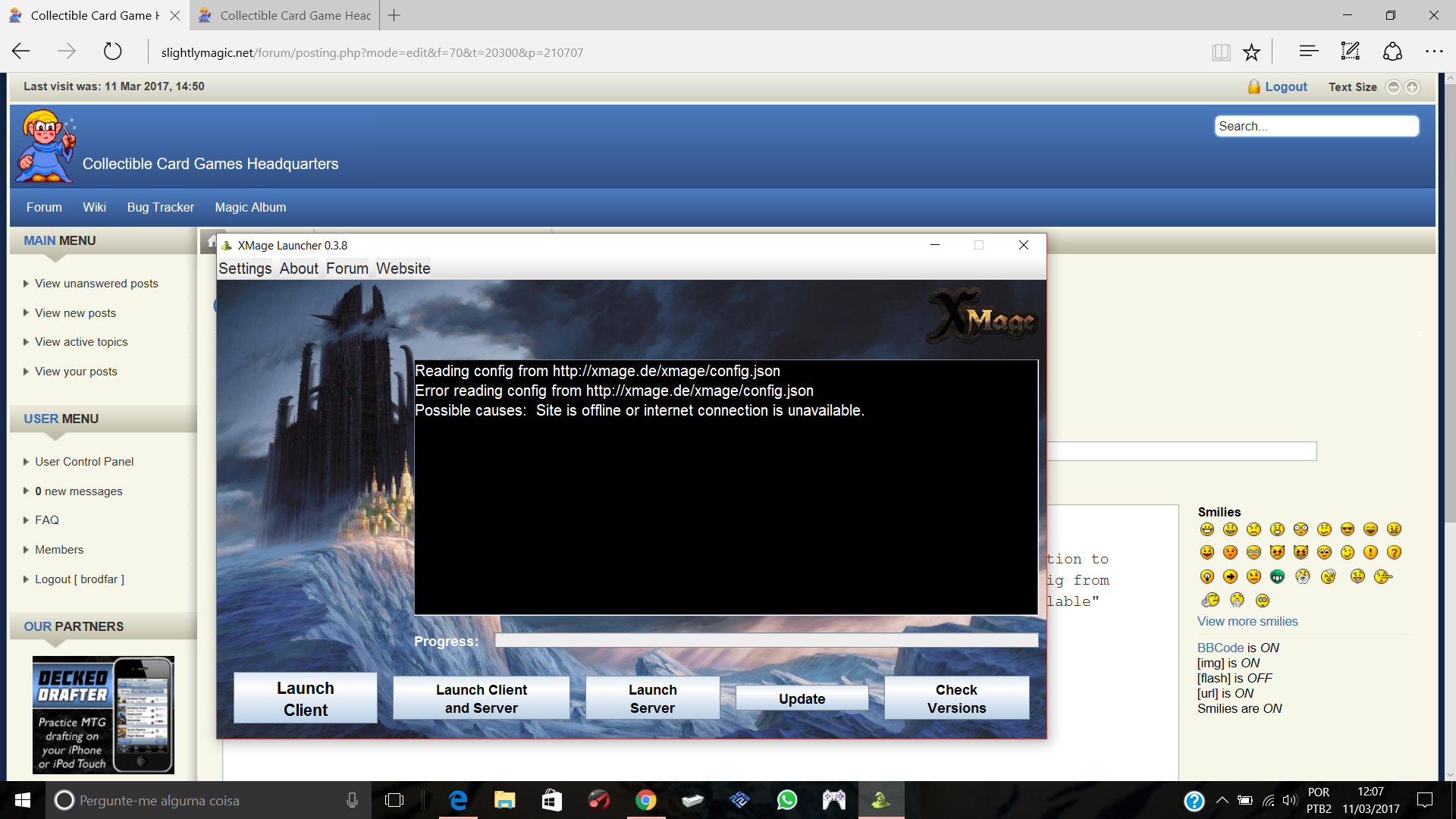 I'm having some connection issues, my java is installed and updated and i cant find connection to update xmage, it says: "Reading config from xmage.de/xmage/config.json" "Error Reading config from xmage.de/xmage/config.json" "Possible causes: Site offline or internet connection is unavailable"