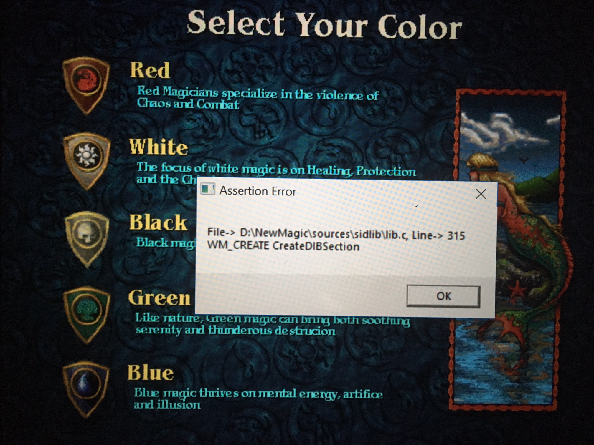 Clicking New Game, there is no character creation screen, and when I pick the starting color I get an error:
