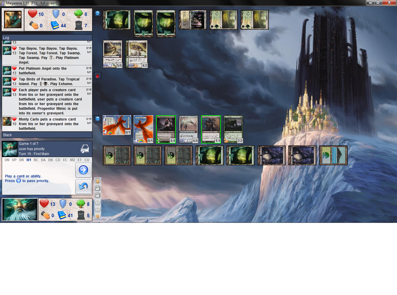 this is as far as i play, since i lost passion to keep playing never-ending game with both players have negative life. and no way to stop the immortal effect.
