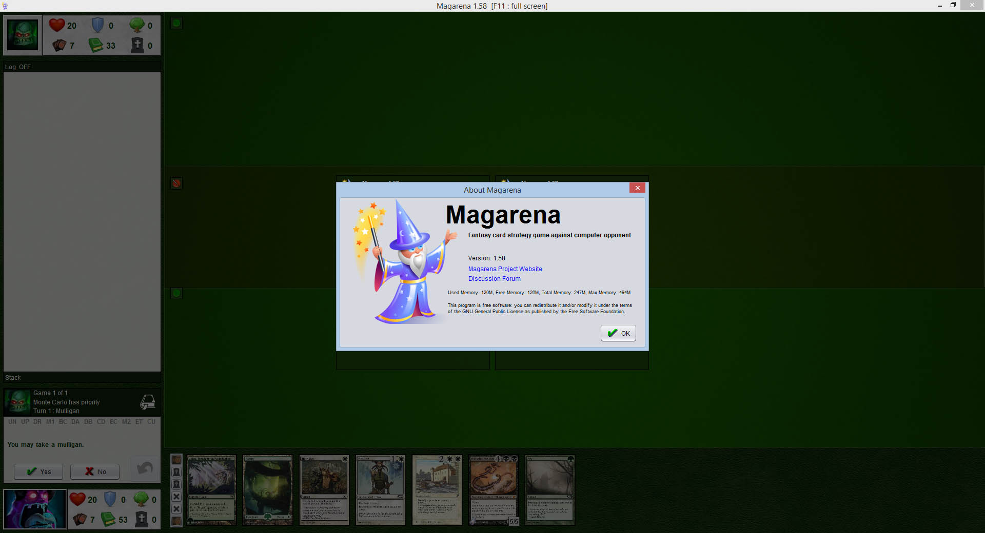 Maybe my computer just isn't fast enough to play Magarena? I should note that with other decks, I see the beginnings of similar slowdown in long games when there are lots of cards in play, maybe around 50+, regardless of legendaries. A good example is the Lord of Land deck, where games last very long and just the human player easily has over 20 lands and 20 creatures in play. But something about legendaries just seems to make it slow down more rapidly.