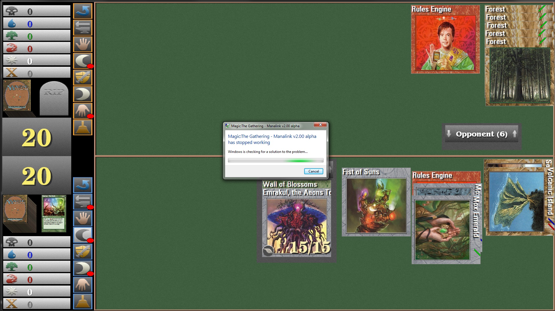 The AI appears to hang when trying to use Quirion Ranger in response to a spell I cast (which it does for any spell I cast.) I'm not totally sure that's the problem (it's hard to diagnose a hang that appears out of nowhere), but I noticed it was behaving slightly oddly with Quirion Ranger during its turn, and it hangs if I try to do anything during mine; and a Quirion Ranger just came into play.