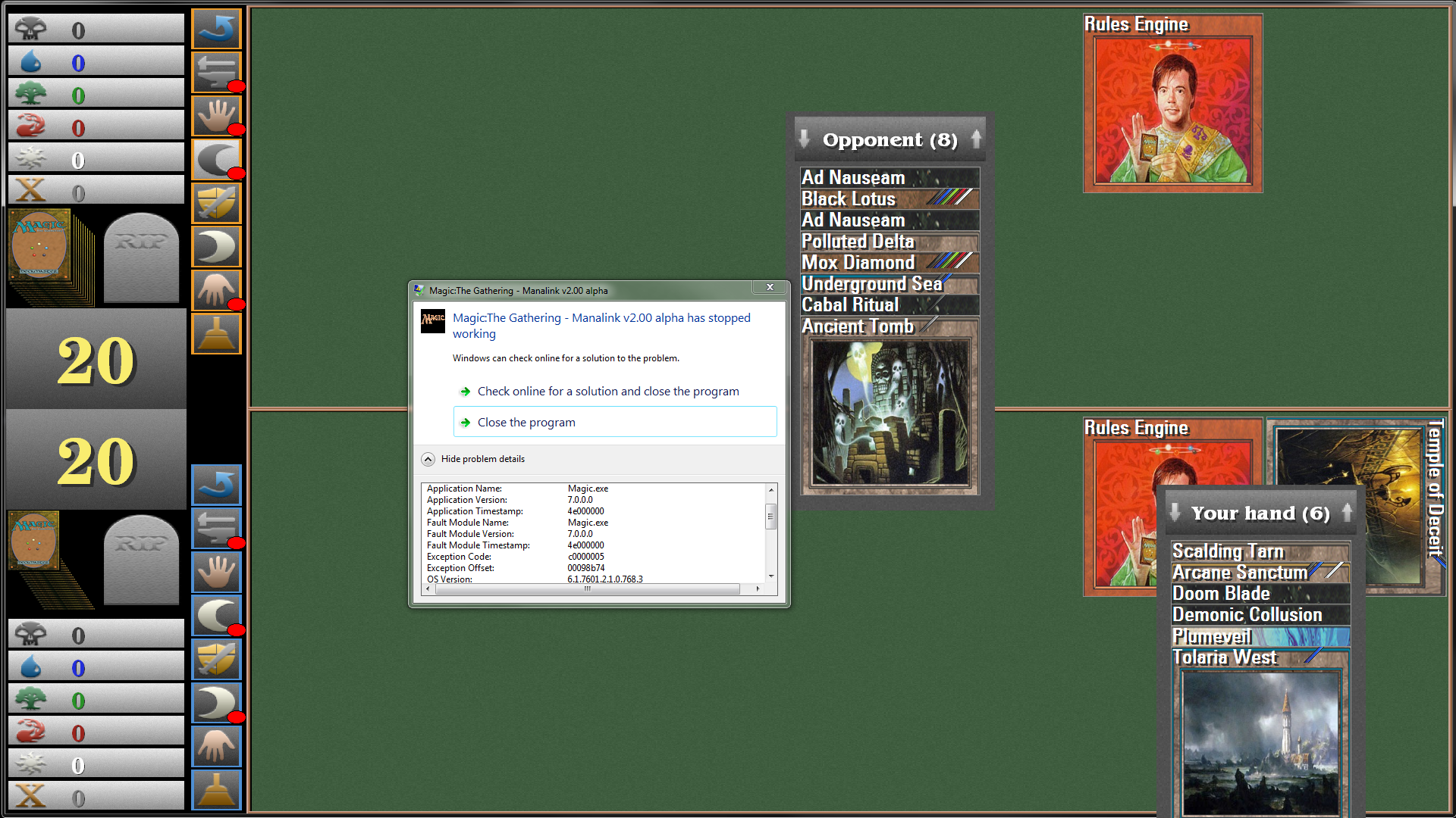 I don't know for sure what is causing this bug, and am having trouble reproducing it except with this exact deck and or hand. Removing Ad Nauseam seems to prevent it from crashing though.