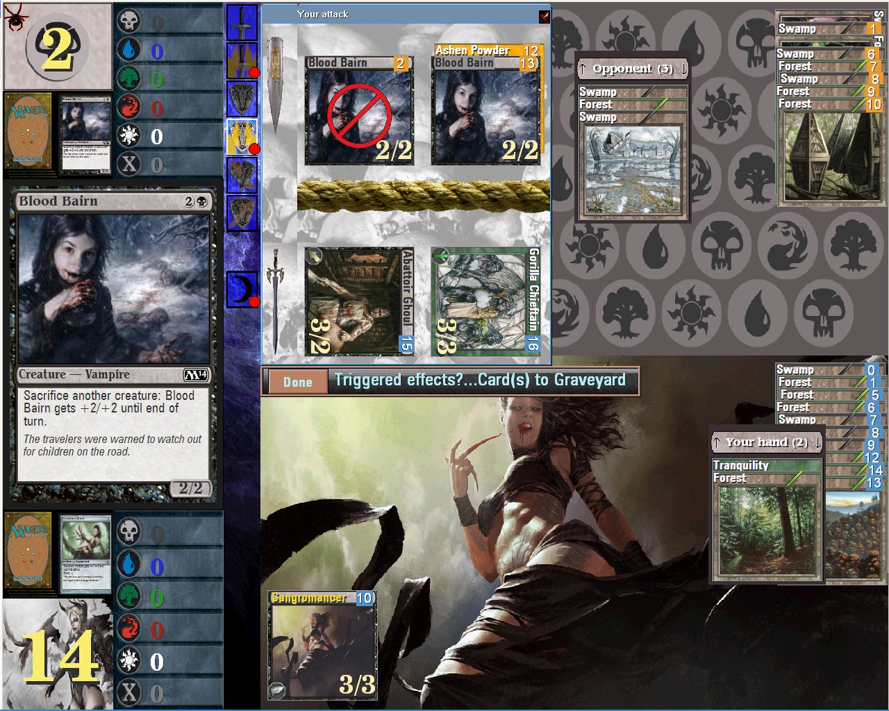 1- Sangromancer's prompt when it's 1st ability triggers should be "Triggered effects...creature(s) to graveyard." or "Triggered effects...creature(s) died."