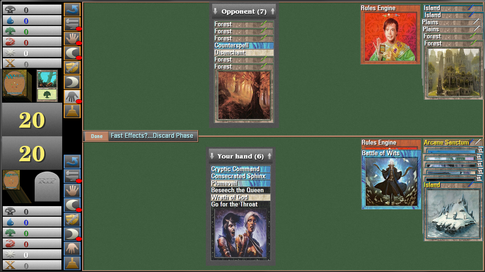 Fantastic! After another day's playing I have yet to see a situation where the AI fails to play correctly with a Battle of Wits on the board. Including some seemingly clever plays. Just like you say, it does almost anything and everything to ensure it does not lose to it.Korath wrote:It and a bunch of other alternate-win-condition cards got specific hinting in commit f6a05bb