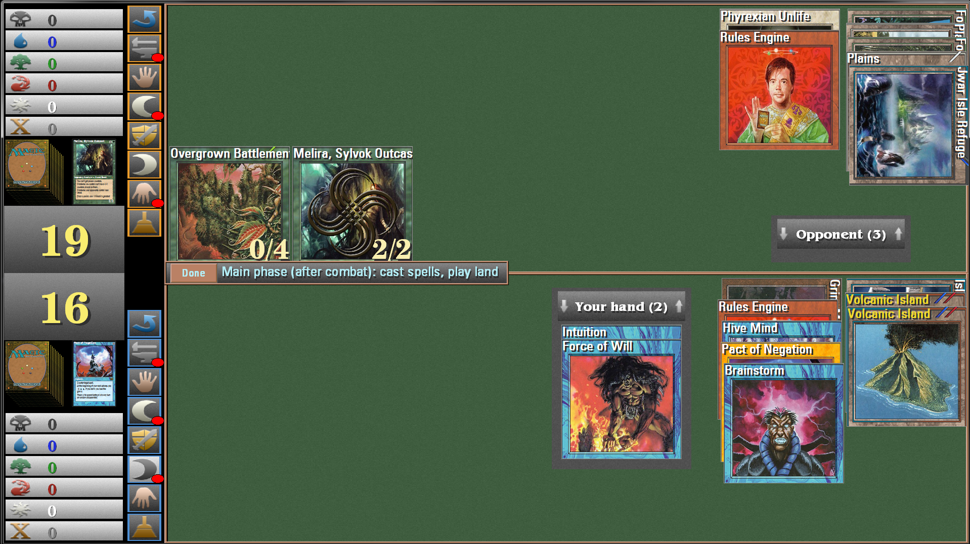 #2 In the attached save file, if I cast Brainstorm, Hive Mind causes the AI to cast a Brainstorm copy. If I then Pact of Negation the AI's Brainstorm copy, the Brainstorm card remains on the battlefield (see attached screen shot).