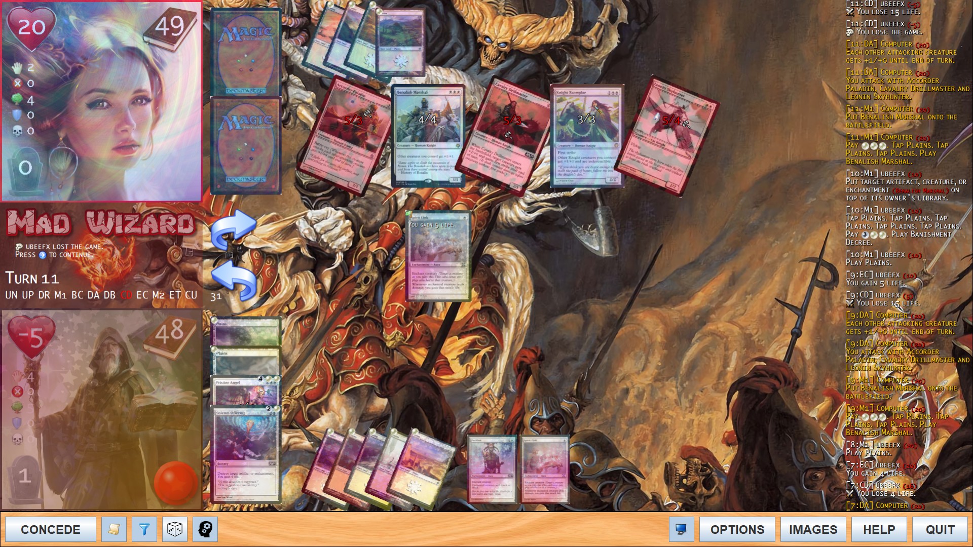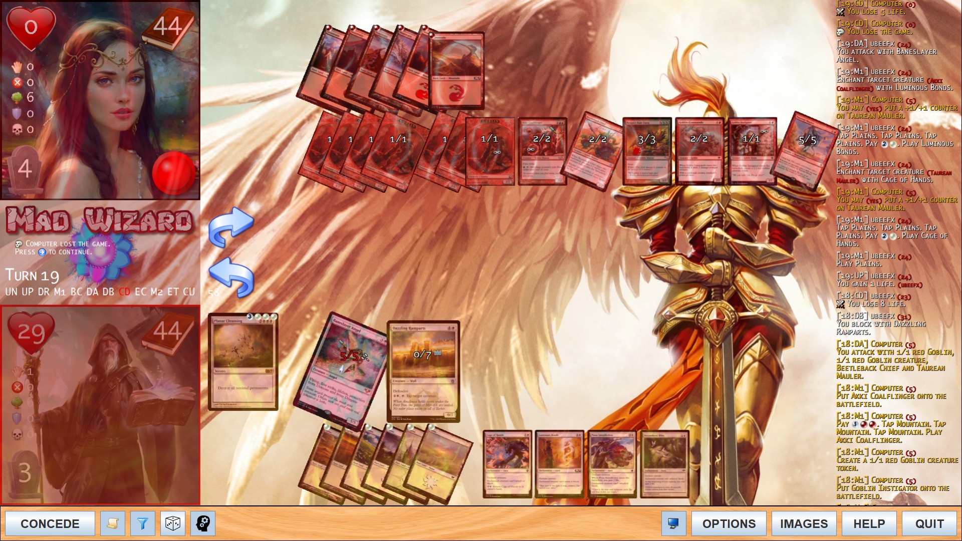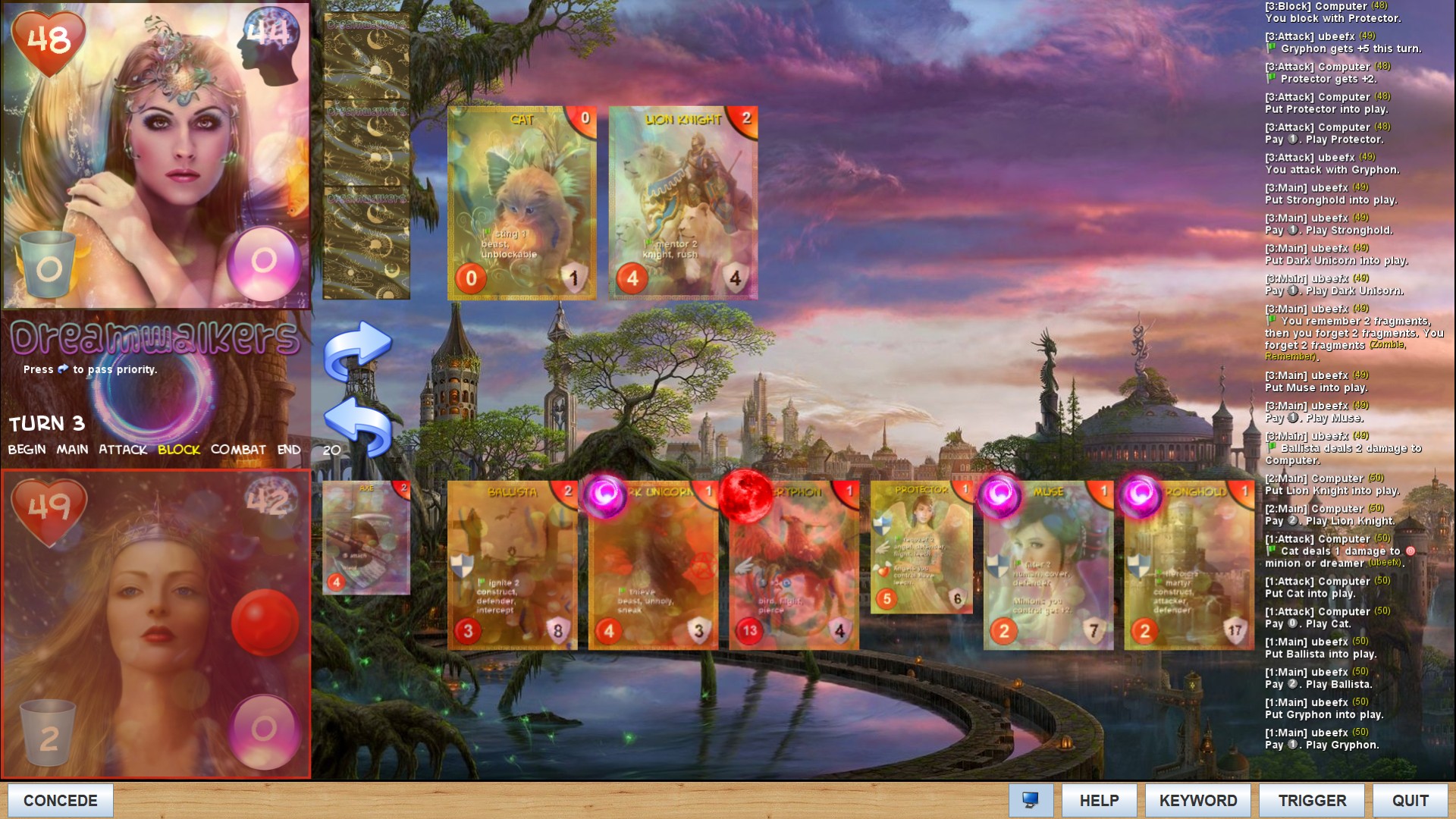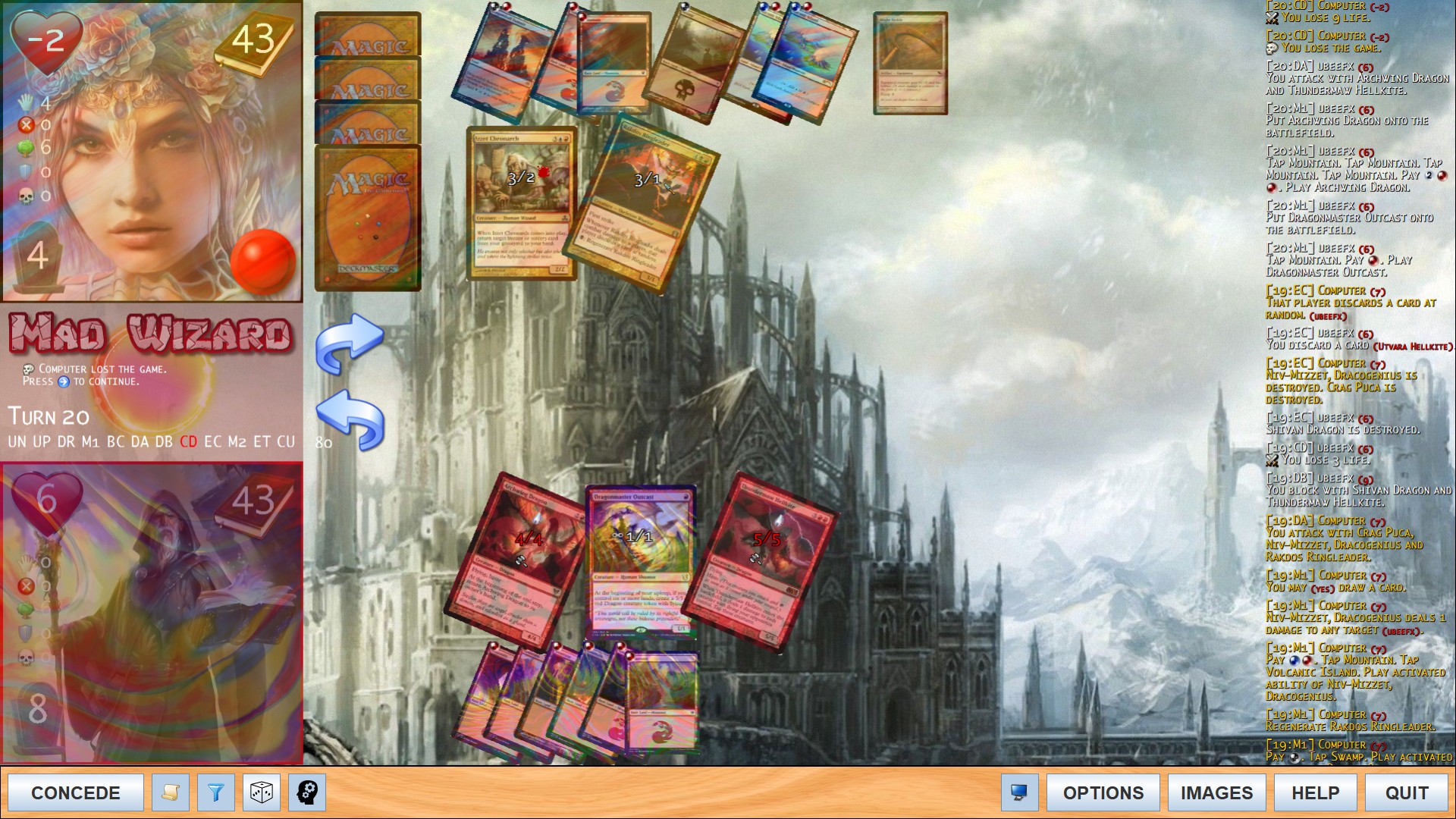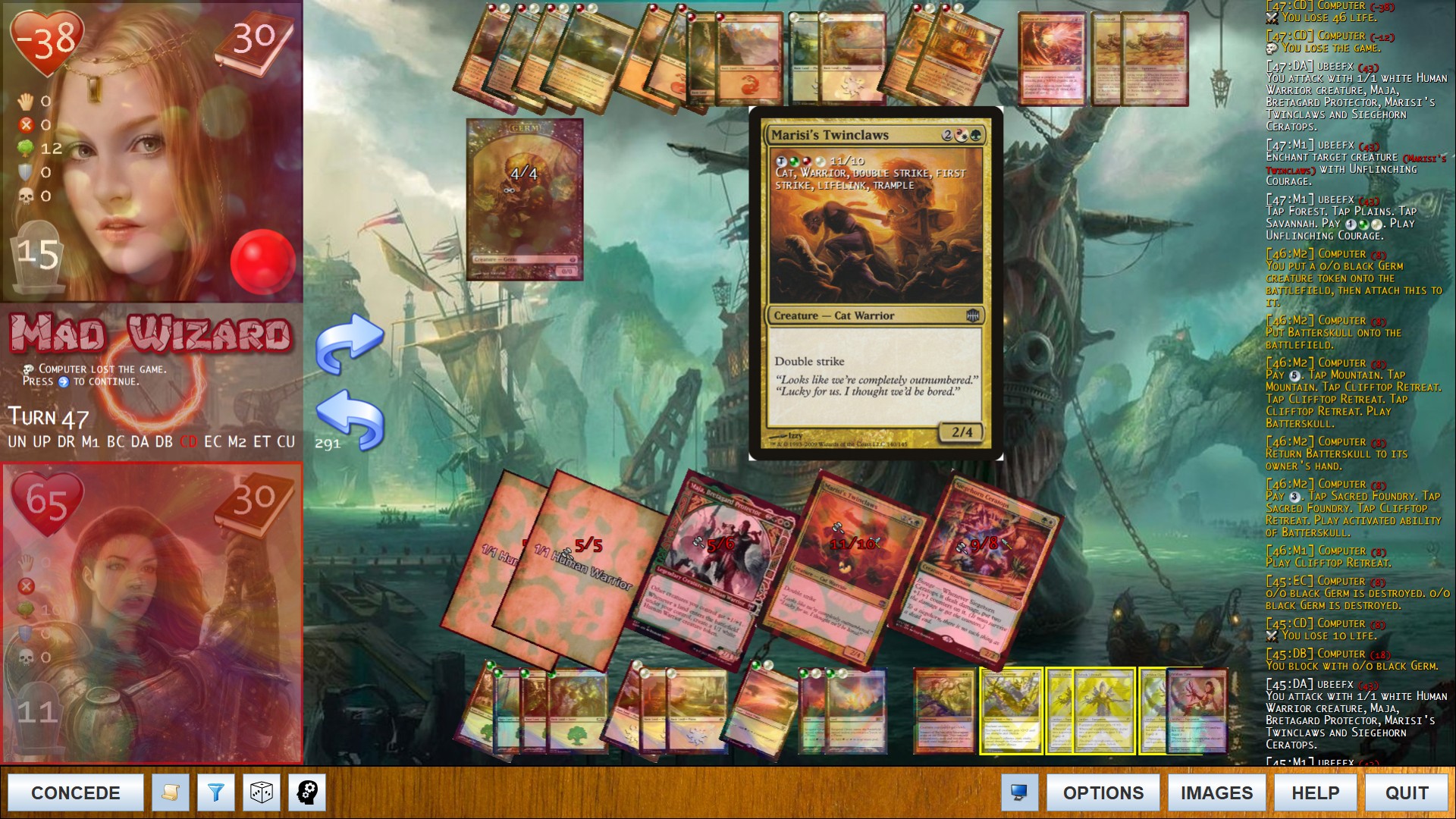 These are some screens from quite a long test game with very powerful creatures on both sides.