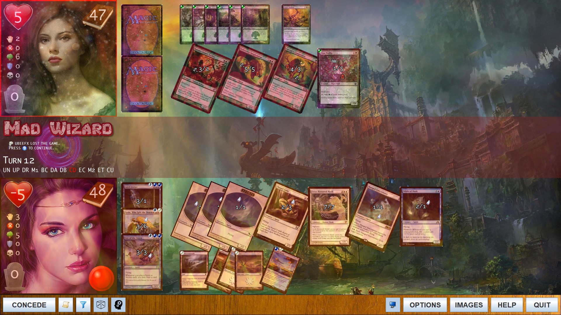 - displaying the graveyard and exile zones
