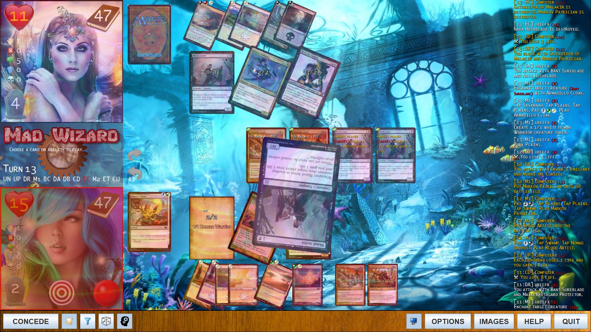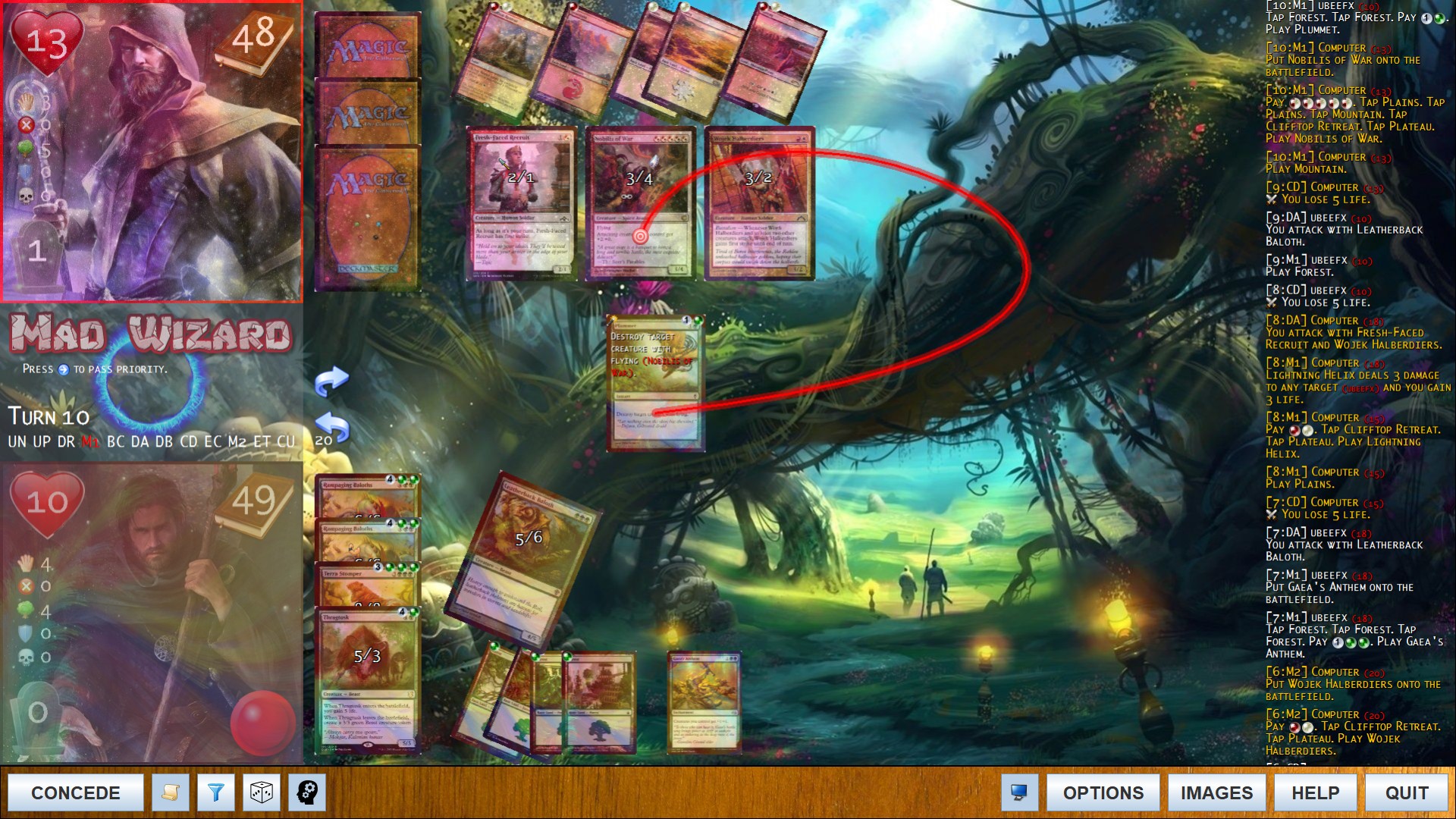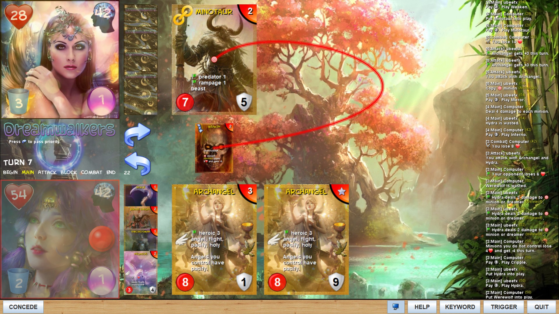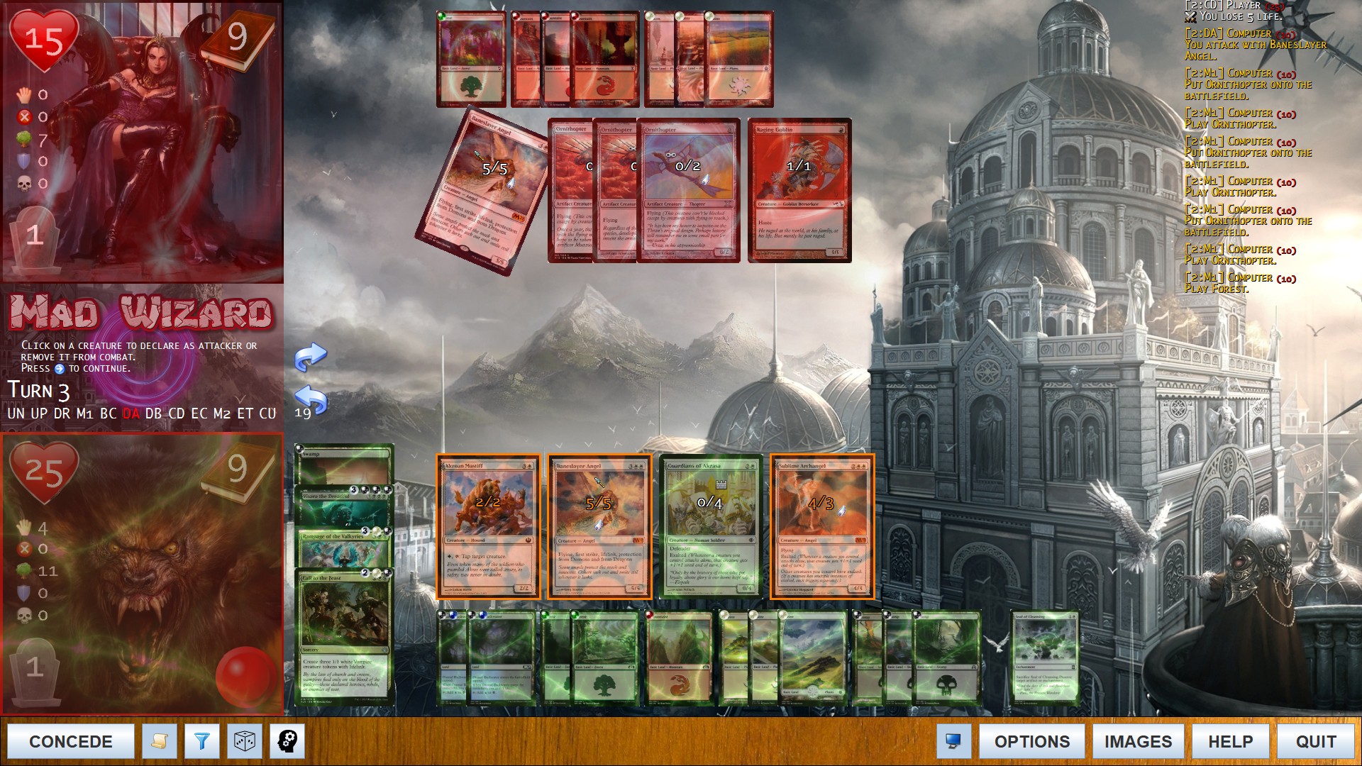 Full stack rendering. Exalted triggers with some activated abilities and spells.