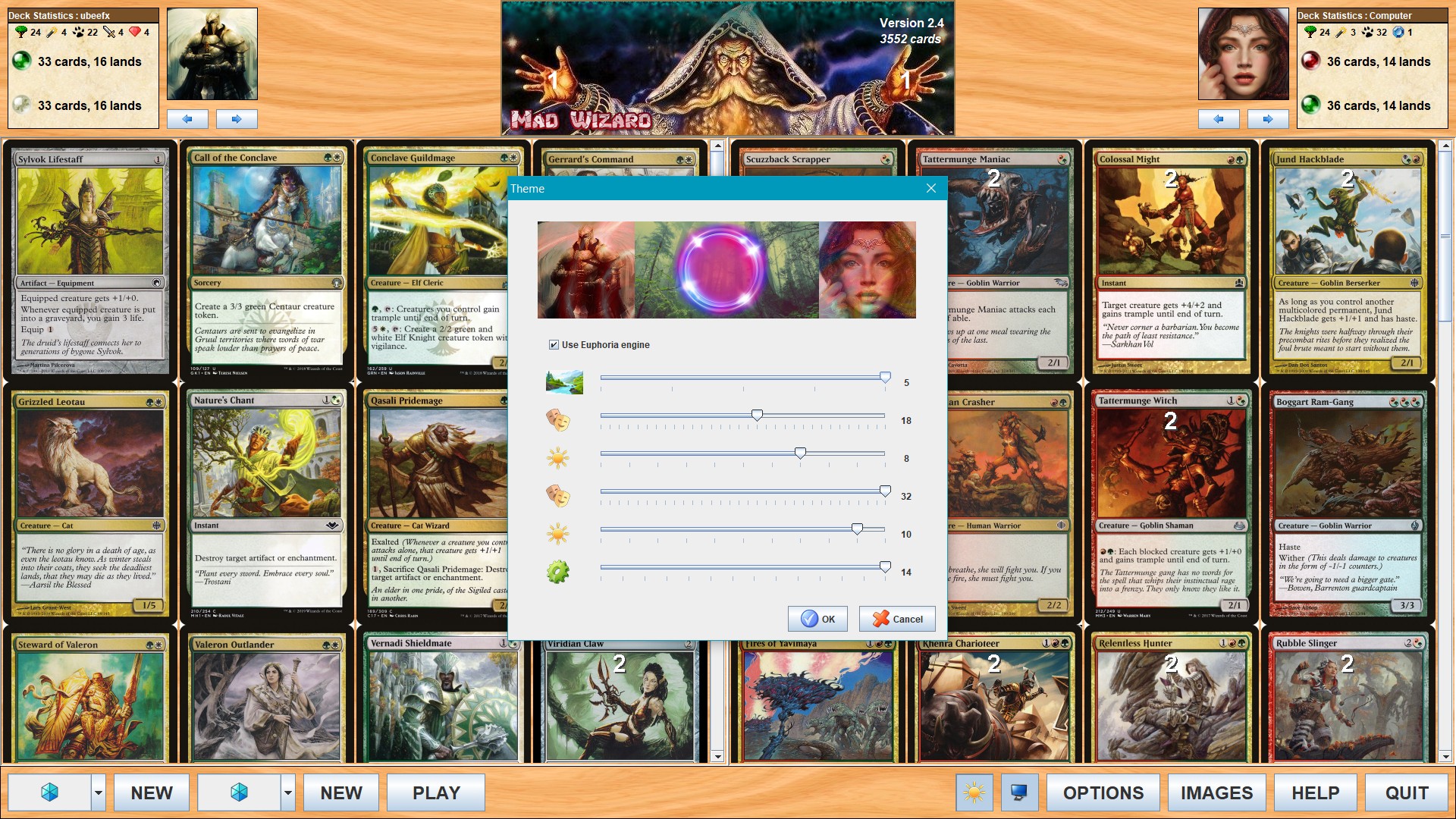 I added support for random built-in constructed decks using the card pool of Mad Wizard.