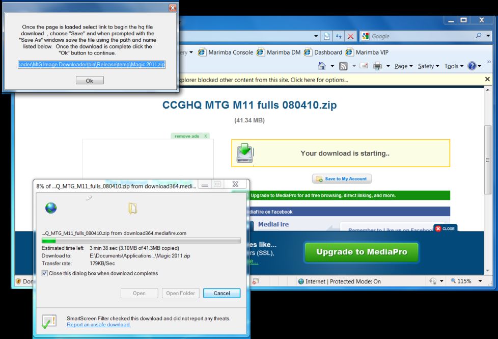 The way this is written you can create a custom setinfo file that contains some of the setinformation such as setname setabbr hqmedia fire url shares (crop and full). You also have a configuration file that contains applications settings that can be configured such as app menu drop down options, window labeling etc. Currently the application will assist users in downloading card images for the magic workstation, magic album, and wagic applications placing the pictures in the respective application folder structure and file naming scheme. Also when using the high image quality will open the media sharing page link and display a box indicating exactly were to save the file to (you can simply copy and past from the window into the save as window!). Once done the application expands the file and processes the images accordingly. So far it seems to be working how ever there are a few things to point out.
