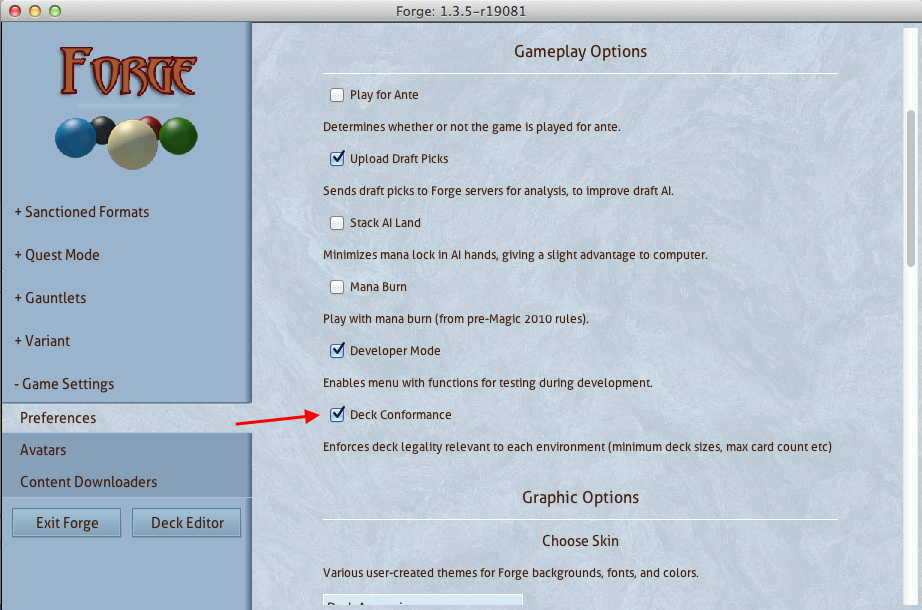 For the first, just go into Preferences and unselect Deck Conformance. If you don't see this, it'll be in the next beta.xPUNskis wrote:It's be nice if there was a way to play with a 40 card deck in just a regular duel outside of Quest Mode. I usually run 40 card decks in quest mode and when I'm working on a building a new deck, it would be nice to be able to test it outside of Quest Mode so in case it sucks, it doesn't destroy my win/loss record and cause me to lose credits.