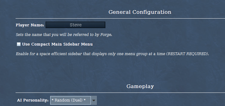 Sorry, I am none the wiser - please can you describe a typical use case when running Forge in hot seat mode. How would I go about emulating/running such a game for development purposes? Thanks.Max mtg wrote:In hotseat that's going to be another Steve... and that would be correct, since Forge refers to LobbyPlayer - well, that kinda prototype for user account in online game.