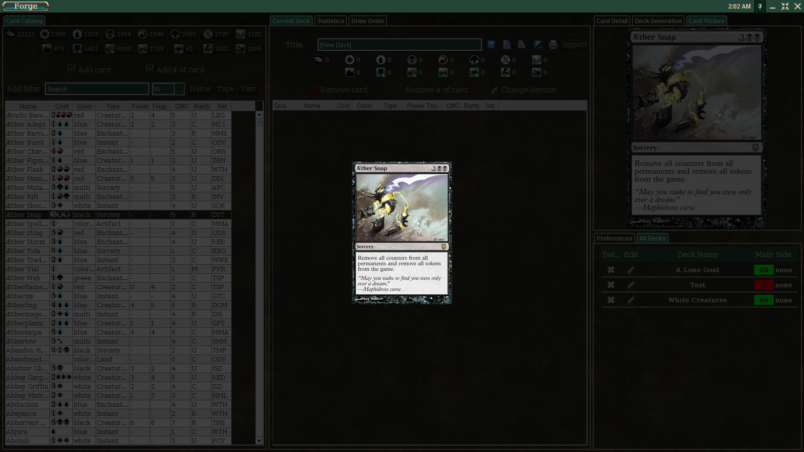 I have only one concern about it for now: I'm not sure if this behavior is unique to my system or not, but when in full screen mode, if a message box pops up asking me to do something (such as a choice box or a yes/no box), the main area of the Forge (the battlefield, everything) disappears as if minimized, so I only see my desktop and the choice box / message box on the screen. I have to manually click on Forge in the taskbar to restore it.