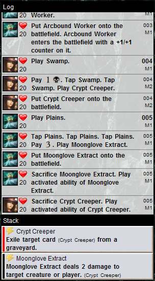 I agree - useful if you miss what the AI just played. The stack already shows the associated card when you move the mouse cursor over an entry which is useful. Even better though (I think) would be an option to automatically show the card the AI played without having to constantly move the mouse over the stack item each time first.Huggybaby wrote:One thing I've always missed is to be able to hover over any card mentioned in the log or stack and see a popup. Is it possible to implement?