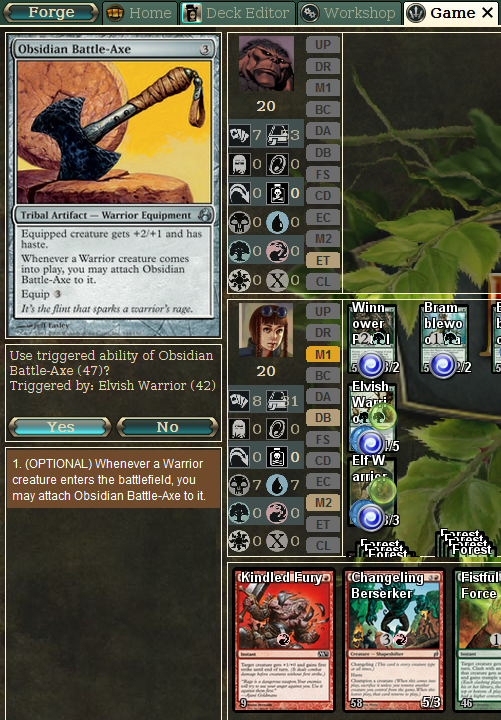 We may take a poll to see if more users like this new implementation. I vote for the original implementation. The latest changes made me a little confused because they gave me an illusion that I hadn't click the card to cast it.drdev wrote:This change is mostly to address the disappearing card issue that had bothered me since I started on Forge. For the card to disappear from your hand when you first click on it and then go seemingly nowhere, it was always very jarring. It was particularly bad when clicking cards that couldn't be cast for lack of targets, which would disappear then immediately animate their way back into your hand. I'm also coming from MTGO, where cards didn't leave the hand until all costs were paid and targets chosen, which always made sense to me. It's not like the other players in the game should get to know about cards you cancel casting, whereas with the old implementation those cards would spend time on the stack before returning to your hand upon cancel, theoretically giving AI logic a chance to see the spell.