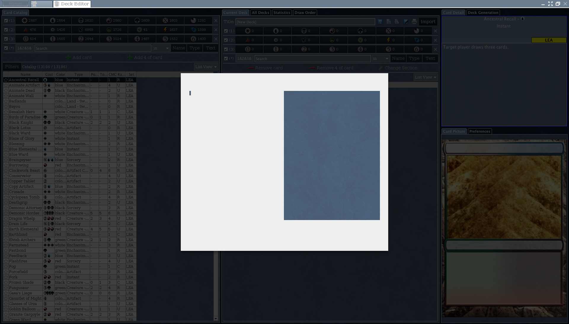 Then, a little outside the scope of your current work, but thought I'd suggest it while you're working in the deck editors. Would it be possible to add the "add card" button to the current deck section allowing the user to increase a card's count without having to find it again in the available cards. It has been a common request, but its beyond my current skill unfortunately. Constructed mode would be the easiest mode to implement it, while draft, sealed and quest would first have to check that the card is still available before the button would be enabled.