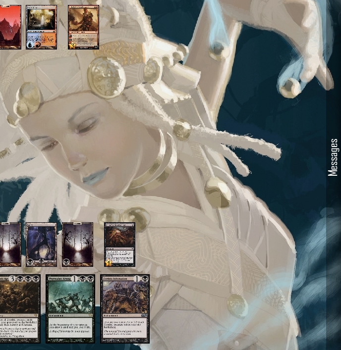 As for the idea of having messages over the stack, this could work, maybe the last two or three messages could be shown here. I guess the downsides are that it will clog up the game field a bit, and the size of this area are dependent on your screen resolution, this area will also shrink when playing Magarena in a window.