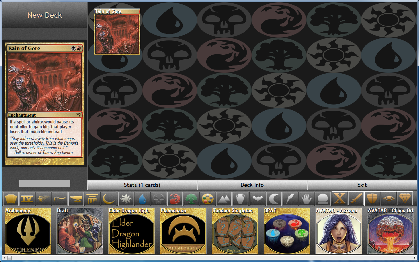 We can't do Rain of Gore properly without a great deal of effort, since the gain_life() function doesn't get told whose effect is causing gain of life. Same as Psychic Purge and Guerrilla Tactics and Spiritual Focus, which can't tell whose effect caused you to discard; but for Rain of Gore, the approximation is much more approximate, enough so that it's basically a different card than what was printed.