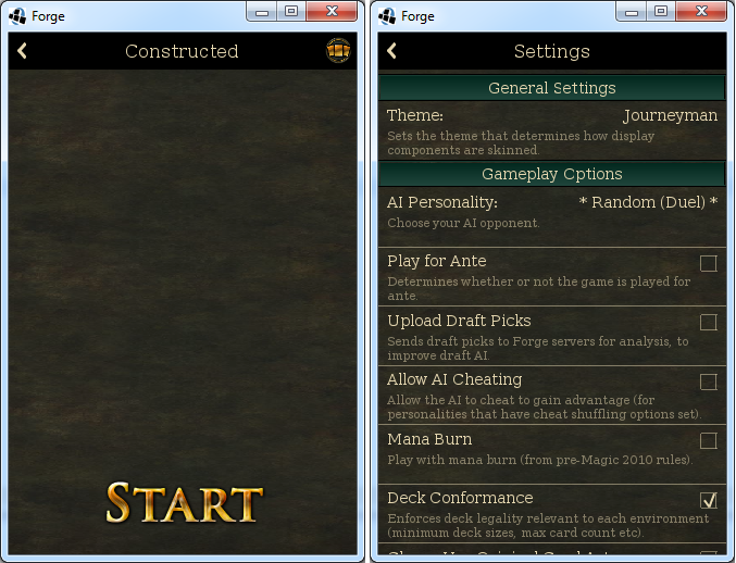 The Start button goes without saying, and obviously I have yet to add any options for picking a deck.