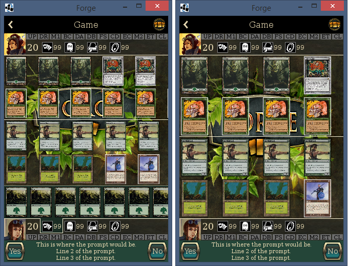 I think selection of SpellAbility should be ok this way. I still haven't had a chance to actually try it out yet, so aside from conjecture of screenshots I can't tell how it feels. In this case, does the back button cancel you out of zoomed in mode? So if I have a creature like Morphling and I click next to see all the SAs, then I get to the last one and I realize I wanted the second to last, do I have to scroll ALL the way back around? Or is there a way to goto the previous one?drdev wrote:So I've got an early version of card zoom working. Check it out:CardZoom.png