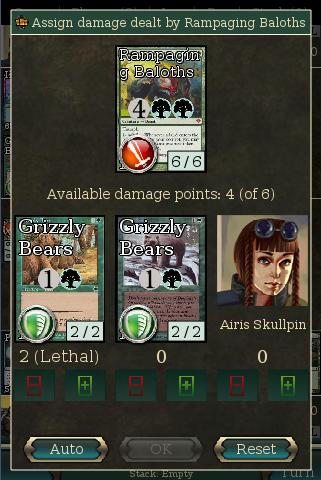 I was playing as Starfire 3, and the Stack popping open in the middle of multiple triggers going on the stack (as I was choosing targets) was extremely time consuming, and annoying as a user. I think I had like 12 triggers on the stack at one time, due to chaining -1/-1 counters at one point. [FYI, this trigger chaining was due to Blowfly Infestation and Midnight Banshee. I think I had two of each in play, and the AI had like 6 creatures in play at the start of my upkeep.] So it was basically like.. 6 creatures in play, 2 Banshee triggers on the stack (no targets). First trigger resolves, 2 creatures die, 4 more triggers go on the stack, each one needing a target. Stack opens as each trigger goes on the stack, then I need to close it, since it pretty much takes over the whole battlefield. Multiply that by 4. And then do that 6 more times as each creature dies to the Infestation trigger.