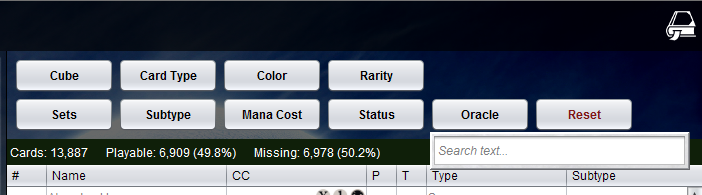 - improved responsiveness of search text field by not filtering the card pool on every change event. Instead only initiate search after 500ms from the last event. So if you have reasonable typing speed it may only run a single search on, say "tap an untapped", instead of firing a new search for each character as it is typed (ie. 15 searches!).