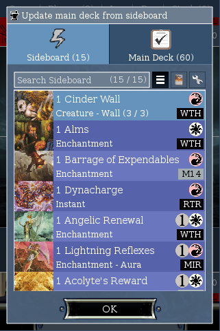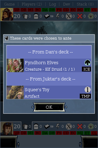 I've now gone ahead and implemented a special dialog for sideboarding rather than using the DualListBox. This should make sideboarding much easier.friarsol wrote:Certain dialog boxes I'm unable to long-click to get the card detail info (Ante, Sideboard, I think others).