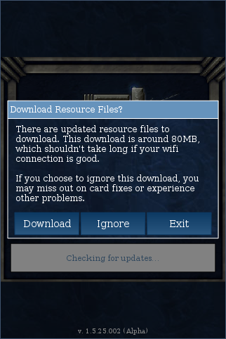 I just released 1.5.25.003, which adds a prompt before downloading resource files, giving you the option to Download, Ignore, or Exit. It also informs you of the approximate download size, as well as whether or not you are currently on wifi.kestell wrote:Having said that, Reenen has a good point, not everybody has unlimited data, and an open ended downloading resource files could be daunting to some people - so just a heads up on the first run - "this is a 20 MB download, do you wish to continue?" prompt can't hurt.