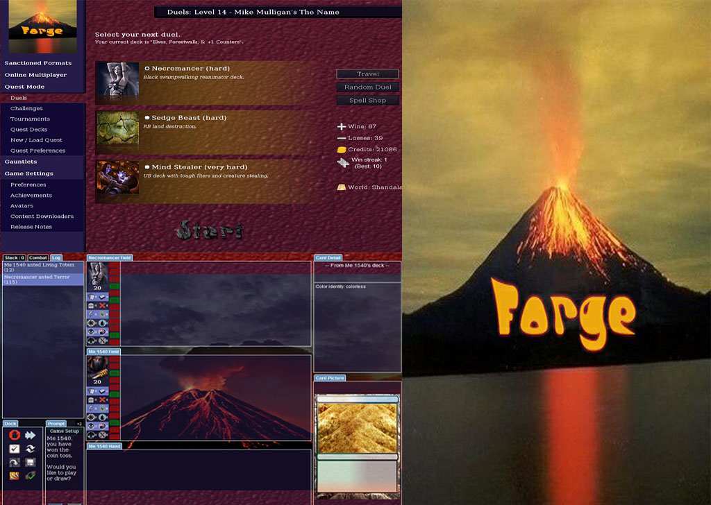 IMHO opinion, the best skin/theme that has been done for Forge is Journeyman, but there was some aspects of it that were problematic for me... I don't like an overly prominent background in my play area, I want a very legible font, etc.