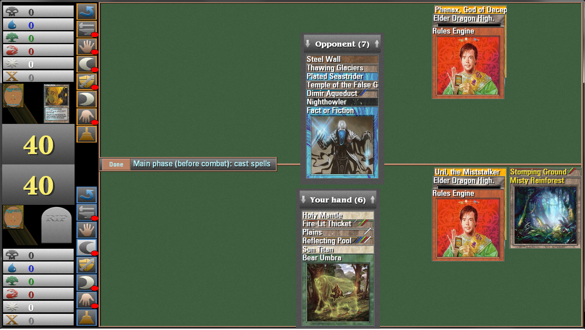 I feel like the AI is making random choices upon spell resolution. I've seen it do wildly suboptimal things. A very common one is it will correctly choose to cast Tinker, but then it will Tinker for a Mox Sapphire or something completely ineffectual even though its deck has Platinum Angel or Blightsteel Colossus or something much much better.BAgate wrote:I've noticed the AI has been disadvantaging himself more recently. He targeted himself with a Cursed Rack and chose a color that he played and I didn't for a Curse of Wizardry.