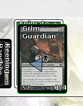 2) Also, a separate issue shown on this same screenshot is that the creature's P/T is not being visualized correctly (Grim Guardian is enchanted by Animate Dead, so it should be showing up as 0/4, but it's incorrectly shown as 1/4).