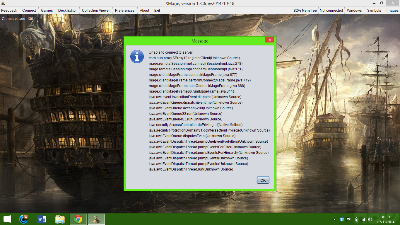 Hi to anyone who may be able to help me. I am having extreme difficulty logging into Xmage today, receiving a lengthy error message when trying to do so. This is also the case with friends of mine on separate computers. Can anyone offer advice? The error message is attached as it would not let me copy and paste.