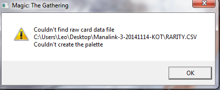 and the game crashes. Can someone help me please? Feel like an idiot!Couldn't find raw card data file C:\Users\Leo\Desktop\Manalink-3-20141114-KOT\RARITY.CSV