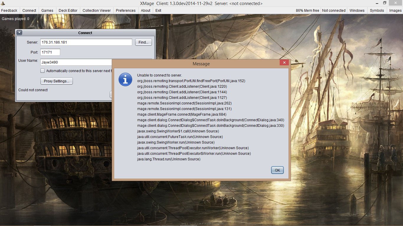 HAVE NOT BEEN ABLE TO CONNECT TO SERVER