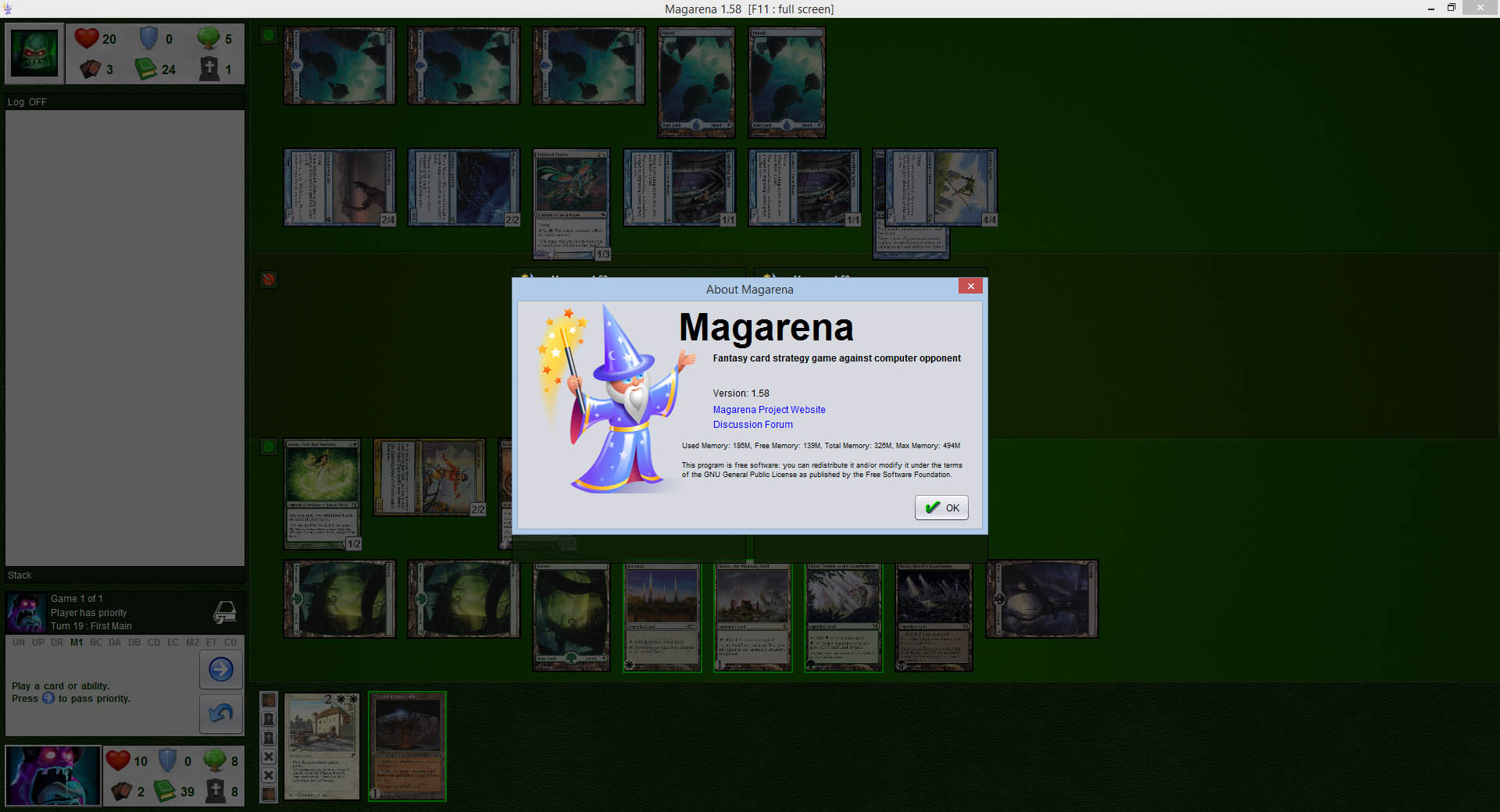 Maybe my computer just isn't fast enough to play Magarena? I should note that with other decks, I see the beginnings of similar slowdown in long games when there are lots of cards in play, maybe around 50+, regardless of legendaries. A good example is the Lord of Land deck, where games last very long and just the human player easily has over 20 lands and 20 creatures in play. But something about legendaries just seems to make it slow down more rapidly.