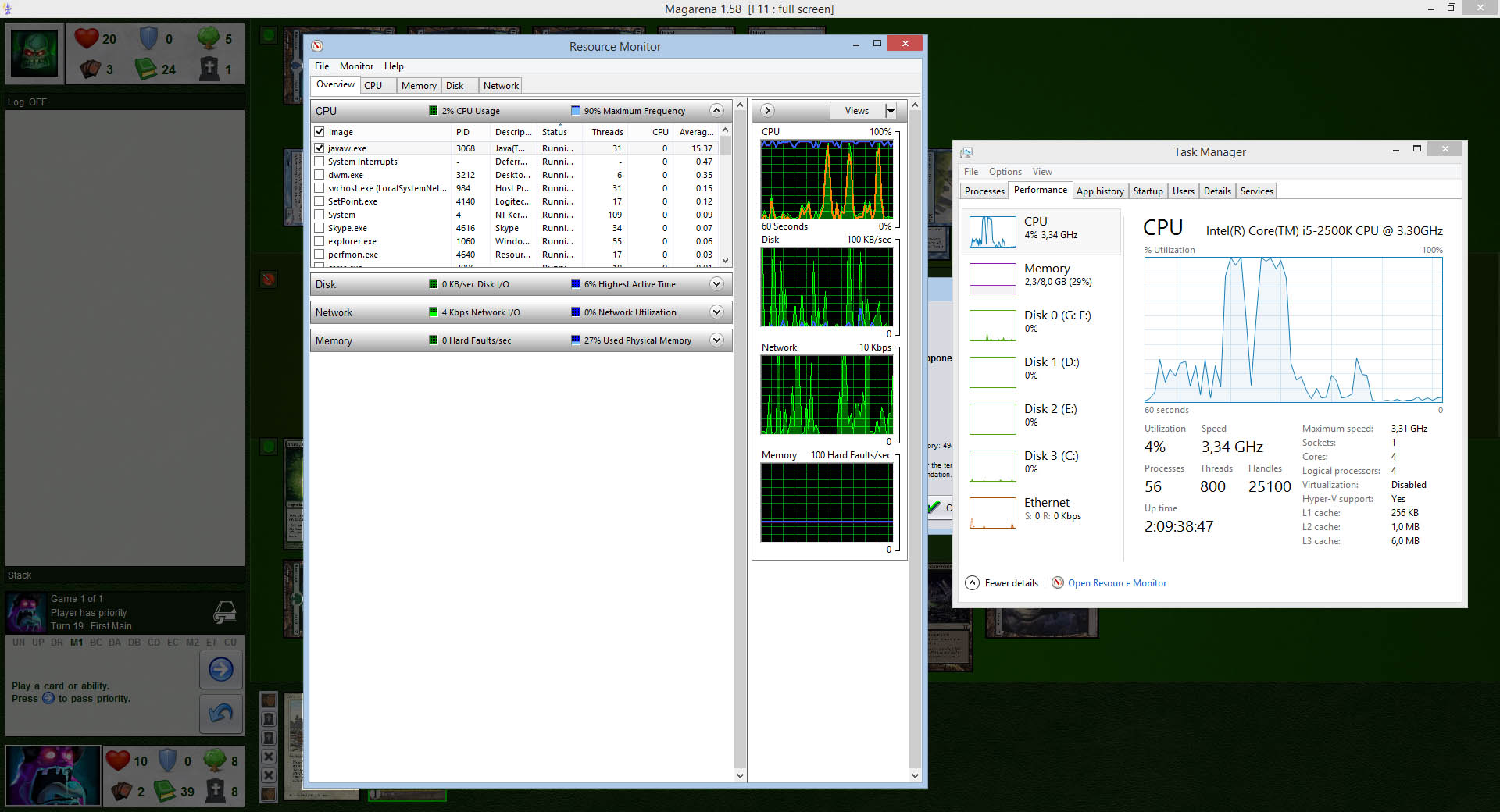 Magarena is installed on the F: drive. The drive activity looks big here but I think resource monitor scales the graphs.