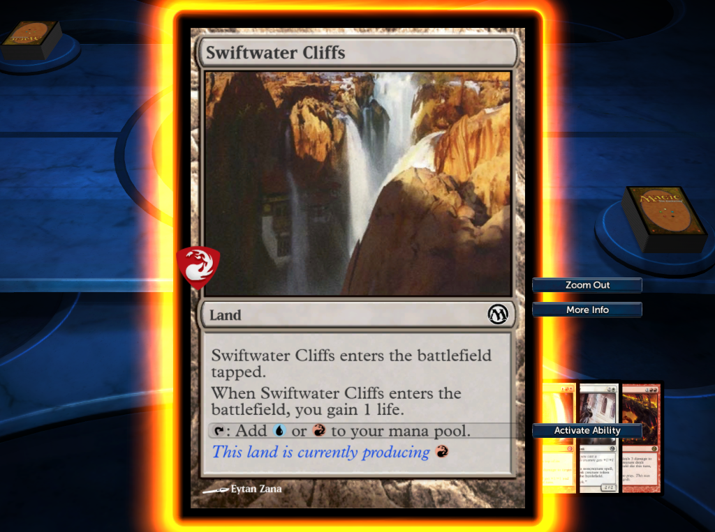 With the imminent release of Fate Reforged guaranteed for March 24th I have a question about dual lands that's not really overly important but I would like to gather some opinions. As the screenshots above show, badges are used to indicate which color of mana a land is currently producing and I think that's enough. But Kieran went through and put the 'This land is currently producing [current color] text' in the ones he tested and I thought it was interesting. So my question is: Which method should be included in the official release? Just the badges or badges with reminder text?