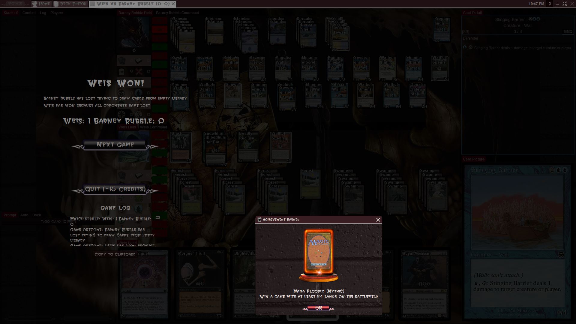 Description: I played Exhaustion on Commander mode , my opponent had all his lands (4) and 2 creatures tapped plus 2 untapped ones. Then crash happened