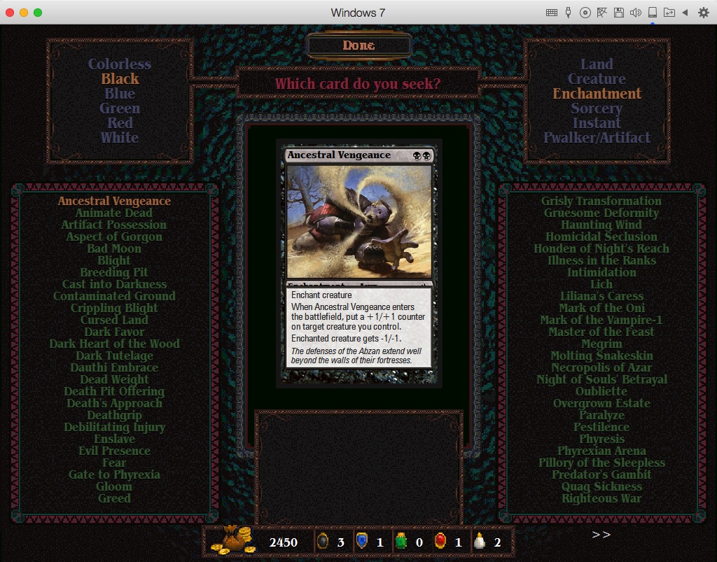I've sold at least two moxes, Necropotence, Tinker and Tolarian Academy in my first game, and it looks fine (sell value shown, no crash) for Fastbond, Mox Emerald and Black Lotus in my current game.Korath wrote:I'm still waiting for confirmation one way or the other whether that Mana Crypt bug affects all the restricted dungeon cards