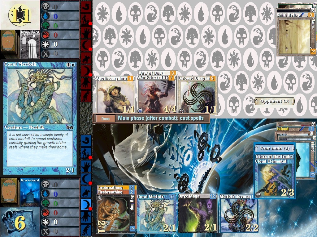 My only green permanent was killed during the AI's combat phase. The screenshot is taken during my upkeep the next turn.Korath wrote:The MicroProse implementation buries the card instead of sacrificing it, and I made it possible for enchantments to be regenerated (for e.g. the Theros block enchantment creatures and eventually Enchanted Evening); so there's some chance that it's getting delayed for a damage prevention step; I can't tell from your screenshot whether this is the case.
