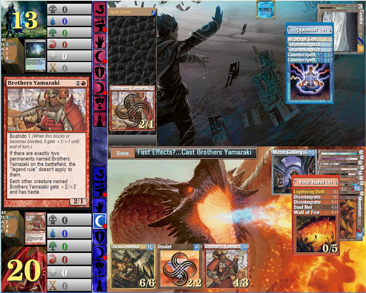 Also, if you debug a Brothers Yamazaki onto the AI's battlefield, then cast two of your own, again, the normal legend rule should kick in and each player should only be able to keep one. Instead, nothing's happening until a player controls three or more.